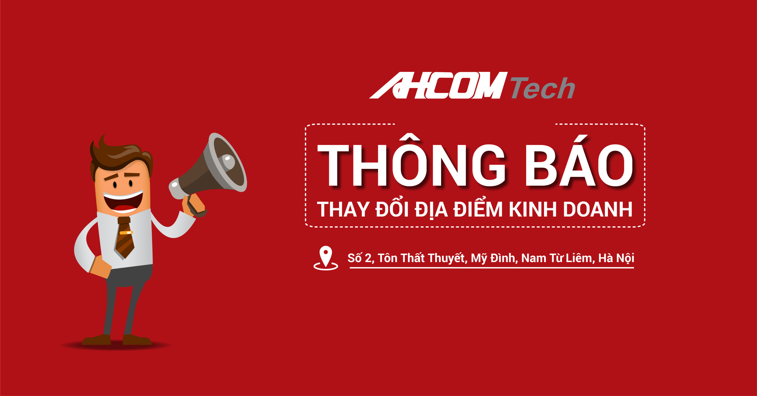Để thuận tiện cho quá trình mua hàng và bảo dưỡng sản phẩm của Quý khách, AHCOM TECH trân trọng thông báo tới Quý khách hàng về việc thay đổi địa chỉ hoạt động, cụ thể như sau: